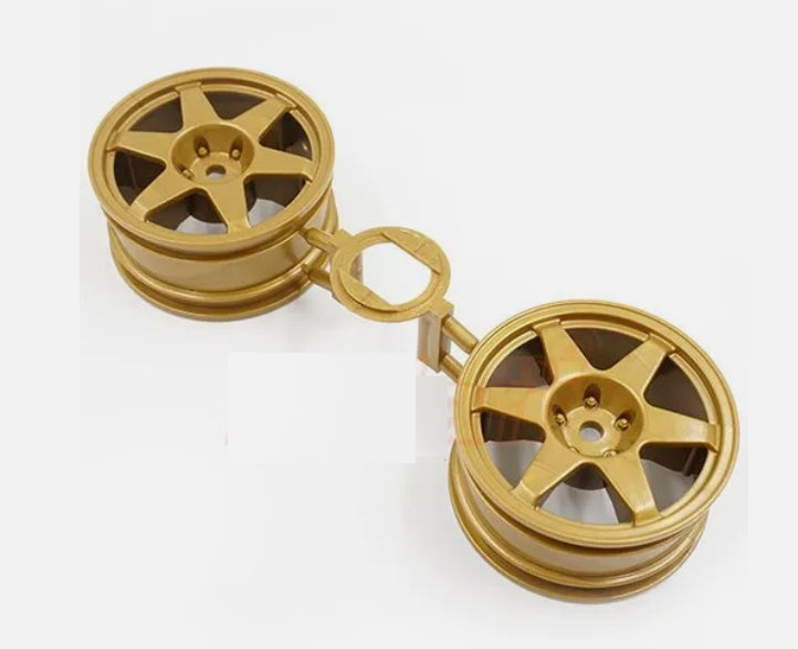 Tamiya disky plastové pro modely v měřítku 1:10, průměr 52mm, šířka 26mm, offset +2mm, šestihran 12mm, 2ks. Více informací