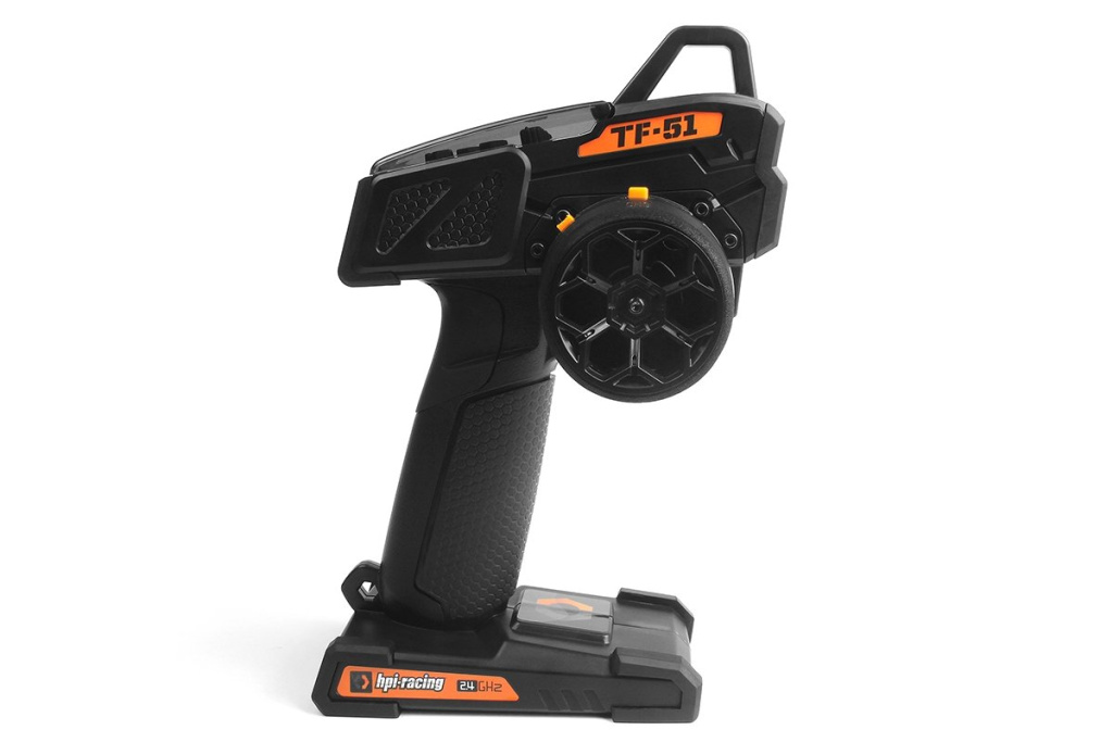 Vysílač HPI, 2.4GHz. Vlastnosti: - technologie 2.4GHz FHSS - 4-kanálový - vyměnitelný imístění volantu pro leváky i pro praváky - gumové rukojeti pro prsty a palce - pěnové kolo pro extra pohodlí a přilnavost - nastavení… Více informací