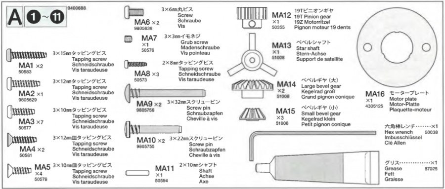 Tamiya A Bag, sada náhradních dílů.