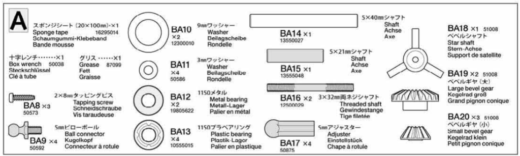 Tamiya A Bag, sada náhradních dílů pro podvozek MF-01X.