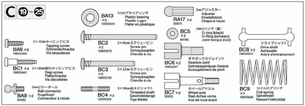 Tamiya C Bag, sada náhradních dílů pro podvozek MF-01X.