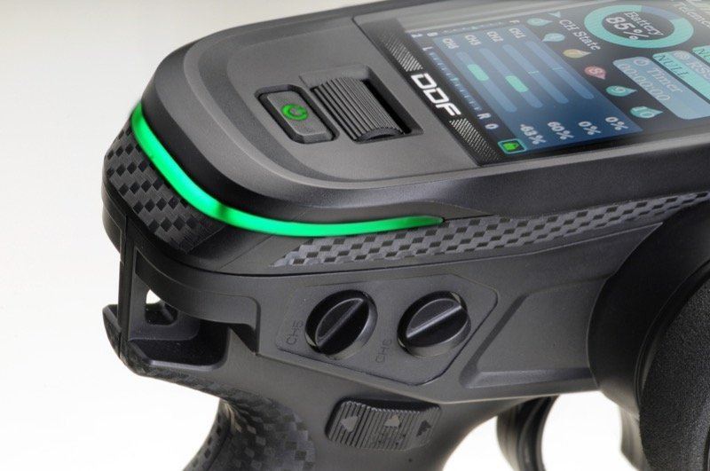 Velký barevný displej 4.0x5.3cm zobrazuje všechny důležité parametry přehledně. Navigace v menu je rozdělena do 3 částí, které jsou intuitivní a snadno pochopitelné. Hlavní nabídka se zaměřuje na základní nastavení, jako je např. nastavení trimů nebo revezních výchylek jednotlivých kanálů, zatímco nabídka modelu se zaměřuje na nastavení konkrétních funkcí modelů, jako je např. nastavení různých mixů řízení nebo pohonu. Třetí část menu umožňuje nastavení samotného vysílače, např. nastavení alarmu nebo displeje.