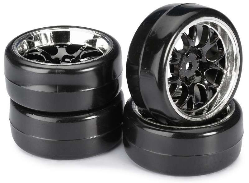 Sada drift kol pro podvozky v měřítku 1:10, šířka 26mm, průměr 63mm, šestihran 12mm, 4ks. Více informací