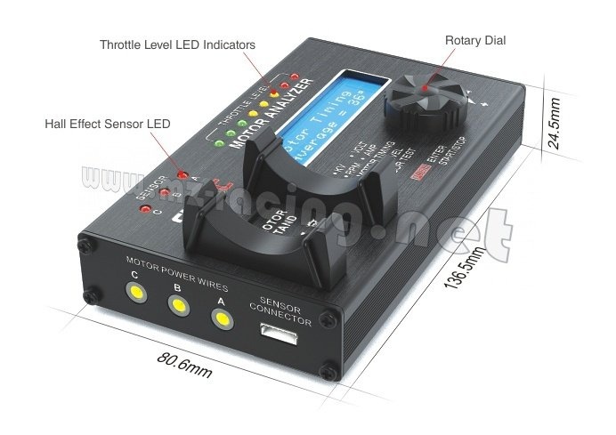 Tester je primárně určen pro 2- a 6-pólové motory v klasickém uspořádání („inrunnery“) používané v modelech RC aut s maximálním proudovým odběrem 30 A. Měření motorů s jiným počtem pólů (2-36 pólů) a motorů s rotačním pláštěm („outrunnerů“) je také možné, ale fungování přístroje s některými typy outrunnerů nemusí být zaručeno.