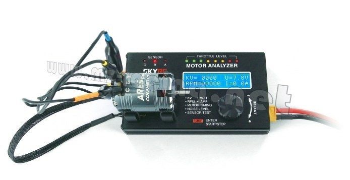Tester střídavých elektromotorů SKY RC Motor Analyzer BMA-01 je elektronický přístroj speciálně zkonstruovaný pro měření parametrů, jako je počet otáček na volt („KV“), otáčky motoru, měření proudového odběru, měření časování (průměrné hodnoty i jednotlivých fází), měření hlučnosti a kontrola funkcí Hallových senzorů střídavých motorů. Naměřené hodnoty pro střídavé motory se snímači i bez snímačů jsou v reálném čase zobrazovány na dvouřádkovém LCD displeji.