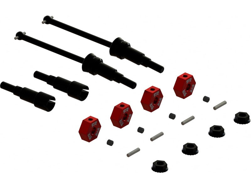 Tuningový díl pro RC model auta Arrma Grom: sada sestavených hnacích hřídelí, sada šestihranných hliníkových unašečů.