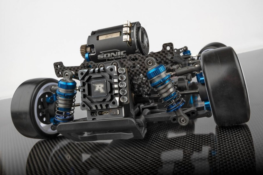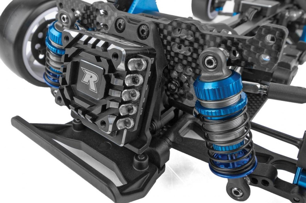 Stavebnice podvozku pro RWD (zadní pohon)/2WD drift s karbonovými platy podvozku a vybranými hliníkovými díly. Bez elektroniky, kol a karoserie.