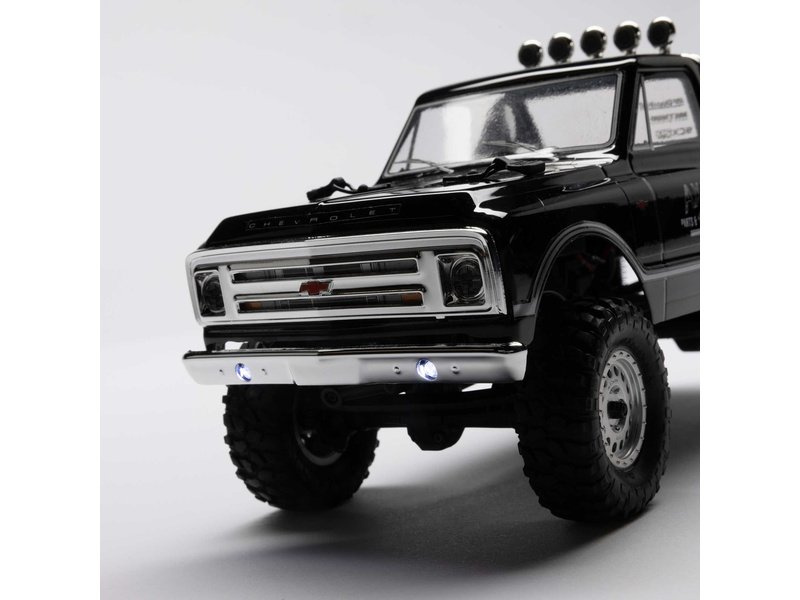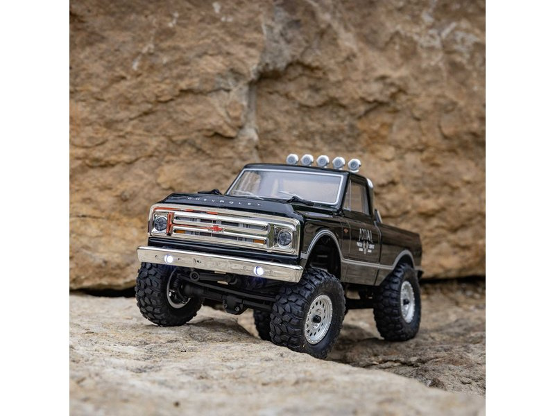 RC model auta Chevy C10 má všechny schopnosti osvědčené platformy Axial SCX24. Stálý pohon 4WD a přední 3bodové a zadní 4bodové zavěšení umožňující překonávat velké překážky. Šneková ozubená kola na nápravách zvyšují světlou výšku. Realistické ocelové C-rámy podvozku zajišťující vynikající tuhost. Detailní karoserie, přední LED osvětlení v nárazníku a licencovaná kola Method s pneumatikamih BF Goodrich, které snadno zvládnou jak silniční, tak terénní výzvy.