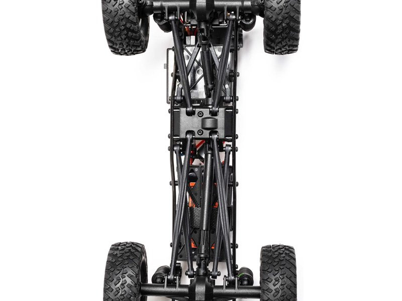 Podvozek SCX24™ zvládne každou výzvu díky trvalému pohonu všech čtyř kol, 3-bodovému přednímu a 4-bodovému zadnímu zavěšení, které se vždy přizpůsobí terénu. Realistický ocelový rám je dostatečně tuhý proti kroucení, šnekové převody na nápravách zvyšují světlou výšku. O 22mm delší rozvor zvyšuje stabilitu, zatímco robustní přední a zadní nápravy, přední čepy a ocelové poloosy vám umožní s jistotou slézat překážky.