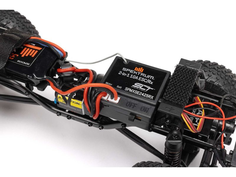 Dvoukanálový vysílač Spektrum SLT2 nabízí řadu užitečných funkcí, jako je nastavení dráhy plynu a řízení a omezení plynu. Je ergonomicky navržen pro dlouhou jízdu bez únavy a má pěnový volant pro přesné ovládání. Balení RTR je tak kompletní, včetně AA baterií vysílače.