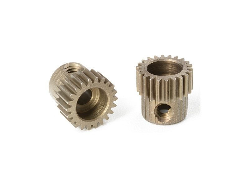 Pastorek Team Corally na hřídele elektromotorů nejen pro RC modely aut. Krátké provedení, materiál kalená ocel, 22 zubů, modul ozubení 64DP. Otvor pro hřídel o průměru 3.17mm (1/8in).