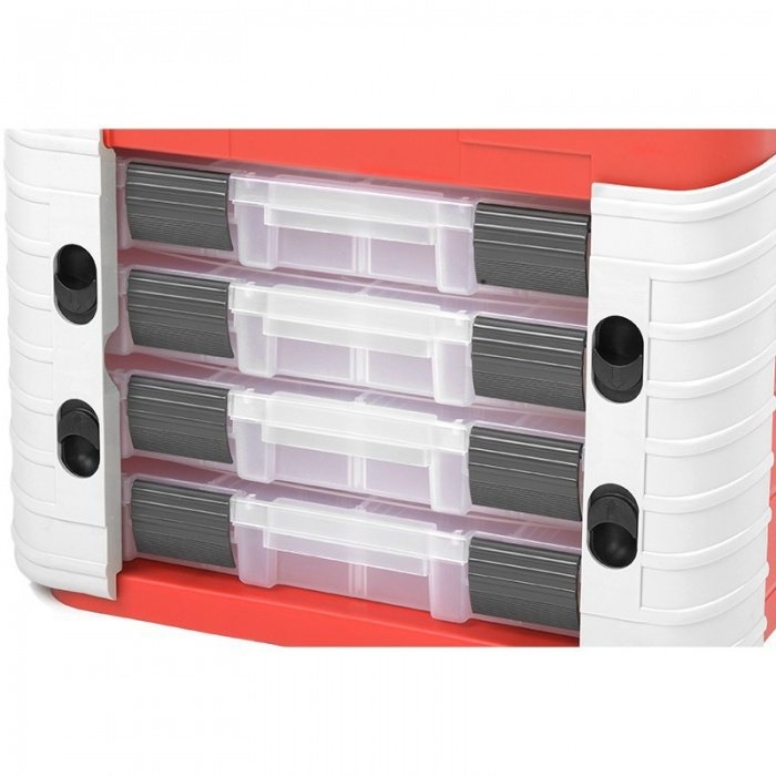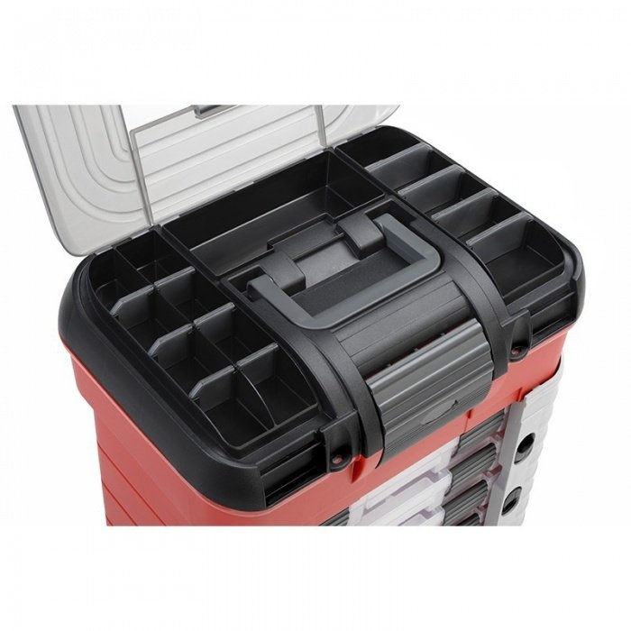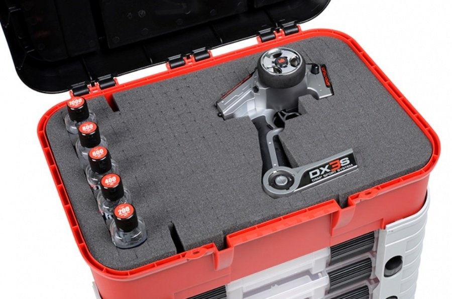 Plastový box Pit Car uvítají všichni ti, kteří jezdí s RC modely aut. je vyroben z odolného polypropylenu. Obsahuje 4 šuplíky s nastavitelnými přihrádkami, v horní části je velký prostor s pěnovou vložkou pro příslušenství - RC souprava, akumulátory, nabíječky, ... a dále 3 přihrádky pro drobnosti.