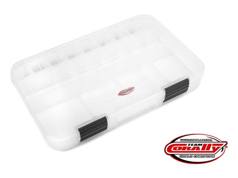 Plastový organizér Team Corally s přihrádkami pro drobné díly a pod. Je vyroben z houževnatého plastu, rozměry 364x248x50mm, 1ks.