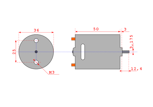 Elektromotor řady 540, nerozebiratelný, vč. kabelů (kabely jsou na motoru naletovány), hřídel 3.17mm, 1ks.