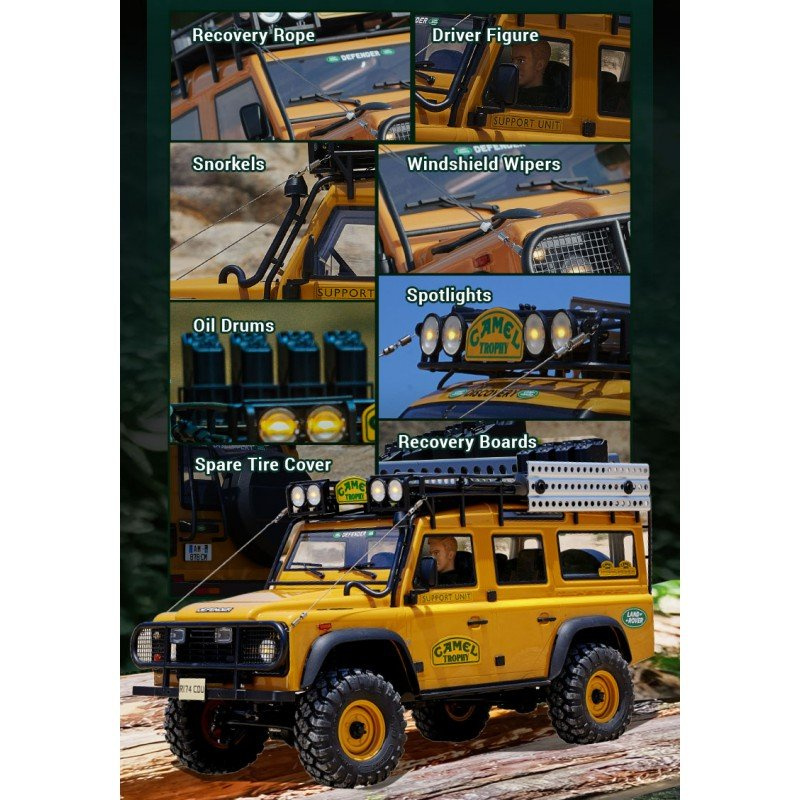 Sestavený model FMS v měřítku 1:10, pohon všech kol 4WD, kovový rám, 4-link, nízké těžiště, dvoustupňová převodovka, plynule nastavitelné kovové olejové tlumiče, měkké pneumatiky vč. vložek, detailně zpracovaná lakovaná lexanová karoserie, podběhy, funkční LED osvětlení, kuličková ložiska, RC souprava 2.4GHz, náhradní díly dostupné, český návod.