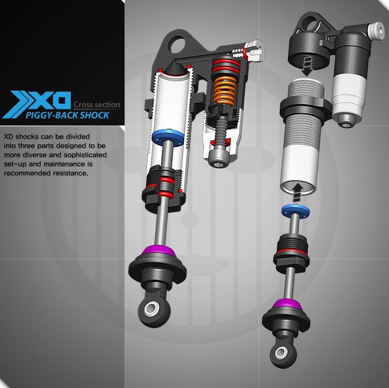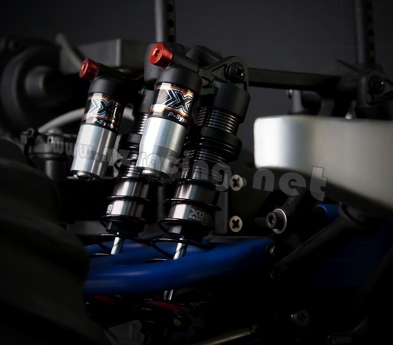 Olejové tlumiče, vzdálenost středů ok 85mm, plynule nastavitelná tvrdost, plynule nastavitelná komprese, průměr pružiny 19mm, délka pružiny 50mm, průměr osy 3.5mm, rozsah 22mm, vč. lahvičky oleje a pružin (středně tvrdé), návod k sestavení, 2ks.