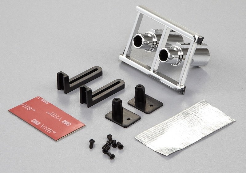 Maketa výfuku, plast, možnost osazení 5mm LED diod (LED diody nejsou součástí dodávky), 2ks.