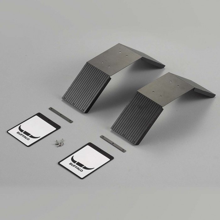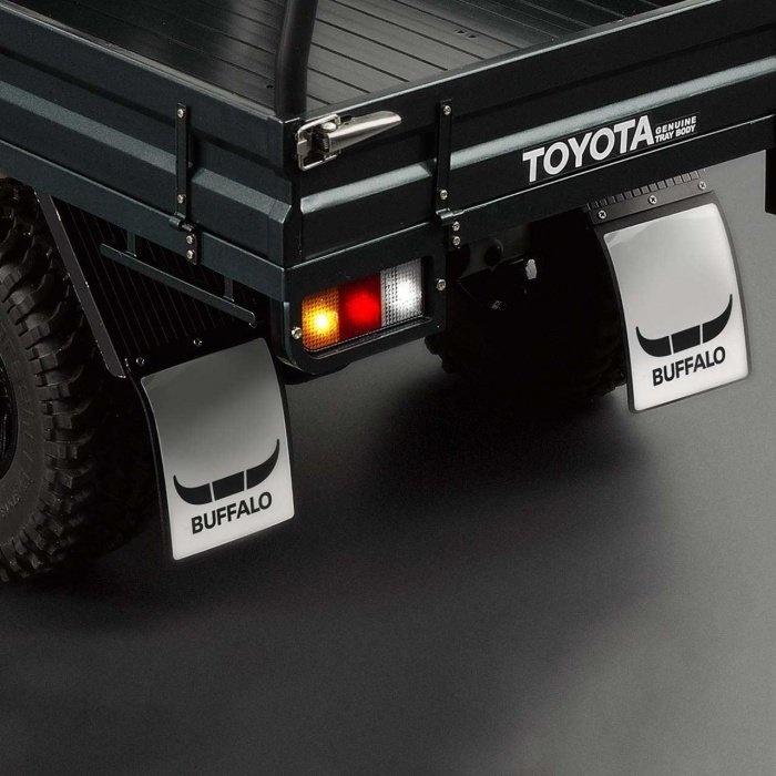 Killerbody Vám nabízí doplněk ke karoserii 1:10 Toyota Land Cruiser 70 v podobě zadních blatníků pro kola 3.75". Blatníky jsou vyrobené z nerezové oceli, v tmavém provedení. Zástěrky jsou vyrobeny ze silikonové pryže, v tmavém provedení bez vzoru.
