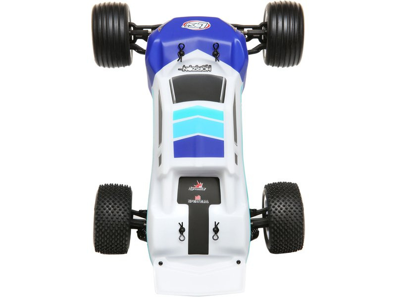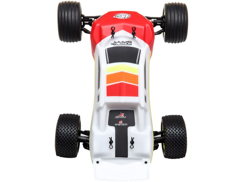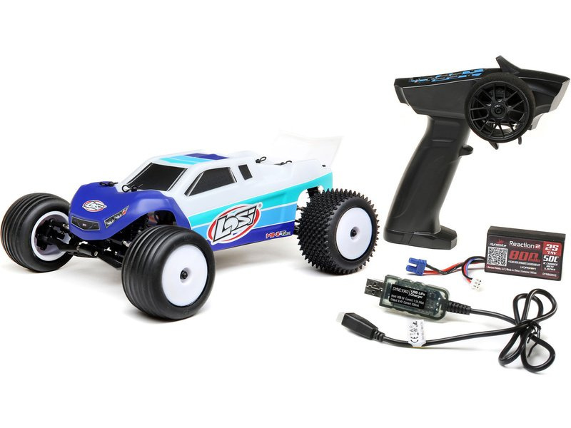 S autem Mini-T SB BL můžete závodit na zahradě nebo venku v terénu. Nenáročný a skladný model pro zábavu s přáteli, model má proporcionální ovládání, řízení je v modelu zajištěno mini servem Spektrum se servo saverem na výstupní hřídeli, k ovládání je přiložen vysílač v pásmu 2,4GHz a voděodolný 3-kanálový přijímač Horizon® 2.4GHz. Model pohání výkonný motor Dynamite® 6000KV s integrovaným regulátorem. Mini-T 2.0 je vybaven kuličkovými ložisky, která zvyšují výkonnost díky snížení tření hnacího ústrojí. Motor je ve středovém uspořádání pro lepší vyvážení, pro maximální traxi mají zadní pneumatiky kolíkový dezén, zatímco přední mají drážkovaný dezén pro lepší vedení směru.