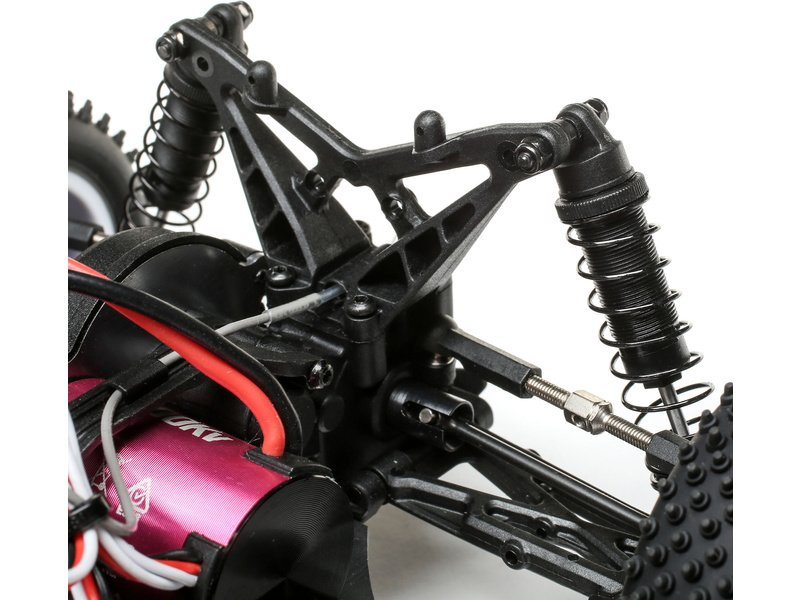 Geometrie odpružení Mini-T 2.0 byla odvozena od konstrukce auta TLR 22T a poskytuje vyvážené řízení a výbornou trakci.