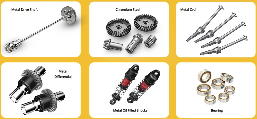 - kovové diferenciály a hnací hřídele CVD, odolné komponenty pro extrémní zatížení a optimální přenos síly