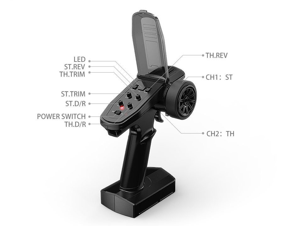 - vysílač: T3D 2.4GHz, plně proporcionální