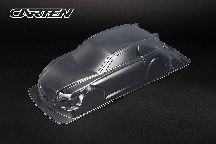 Lexanová karoserie Carten Starlet M-Chassis, čirá, pro rozvor 210mm, vč. polepů.