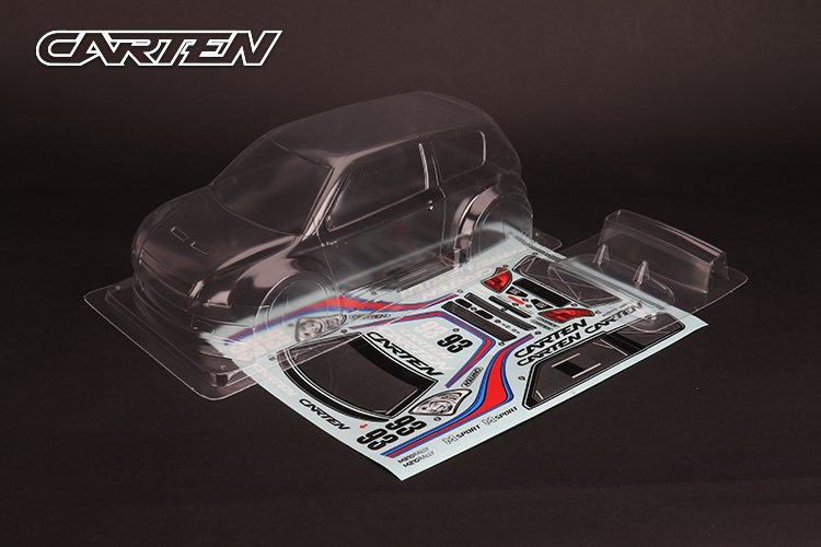 Lexanová karoserie Carten Swift M-Chassis, čirá, pro rozvor 210mm, vč. polepů. Více informací