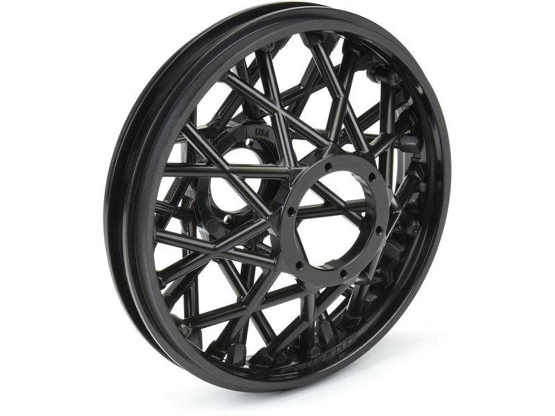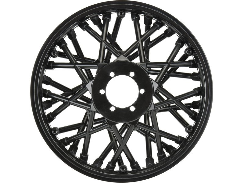 Disk zadního kola Bullyspoke má silnější paprsky než u standardní kola, aby se zabránilo ohýbání při tvrdých nárazech. Využívá styl V2 Bead společnosti Pro-Line, který má výhody jak ve snadném použití, tak v estetice. Díky širokému plochému 1/8 lepidlu ve stylu buggy je lepení pneumatik hračkou. Patky jsou směrovány ke středu ráfku kola. Namontujte si pneumatiky Pro-Line MX33 (PRO1023001) pro maximální vylepšení stylu a výkonu! Tato kola jsou lisována z vysoce kvalitního černého nylonu.