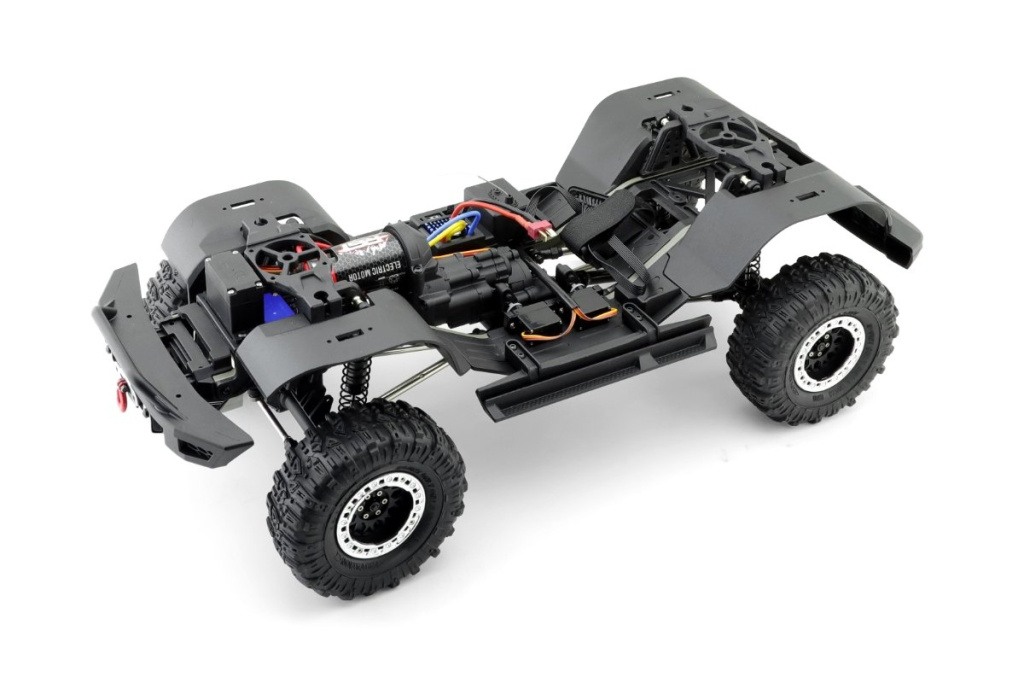 Kompletně sestavený RC crawler/expediční speciál se stejnosměrným motorem a voděodolným (NE vodotěsným!!!) regulátorem a silným servem řízení pro pokročilé jezdce. Model je vybaven 2-rychlostní převodovkou s DIG systémem, servo-navijákem, LED modulem apod. Model je dodáván včetně 6-kanálové 2.4GHz RC soupravy. Pohonný akumulátor a nabíječ NEJSOU součástí dodávky.