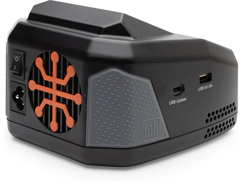 Elegantní skříň nabíječe se perfektně hodí na váš pracovní stůl a do vašeho přepravního boxu. Napájecí síťový kabel je odnímatelný pro snazší přepravu. Pryžové rukojeti vám pomohou bezpečně držet nabíječ při připojování a vyjímání baterií. Vstupní a výstupní porty USB vám umožňují aktualizovat firmware nabíječky a nabíjet sekundární zařízení. Mezi další funkce patří integrovaný vypínač napájení a chladicí ventilátor s nízkou hlučností.