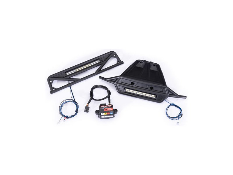 Traxxas kompletní LED osvětlení pro RC model auta Traxxas 1:8 Maxx Slash. Posuňte tento brutální, hbitý model na novou úroveň a užijte si dech beroucí jízdu ve dne i v noci. Přední LED lišta v nárazníku bezpečně nasvítí cestu před Vámi, zatím co zadní brzdová lišta dodá modelu šmrnc. Funkční brzdová světla se spínají skutečně jen při brzdění a ne při zpátečce. Jednoduše připojte jednotlivé světelné lišty do napájecí řídící jednotky a tu do regulátoru. Vše je jednoduché, intuitivní a voděodolné (NE vodotěsné!!!).
