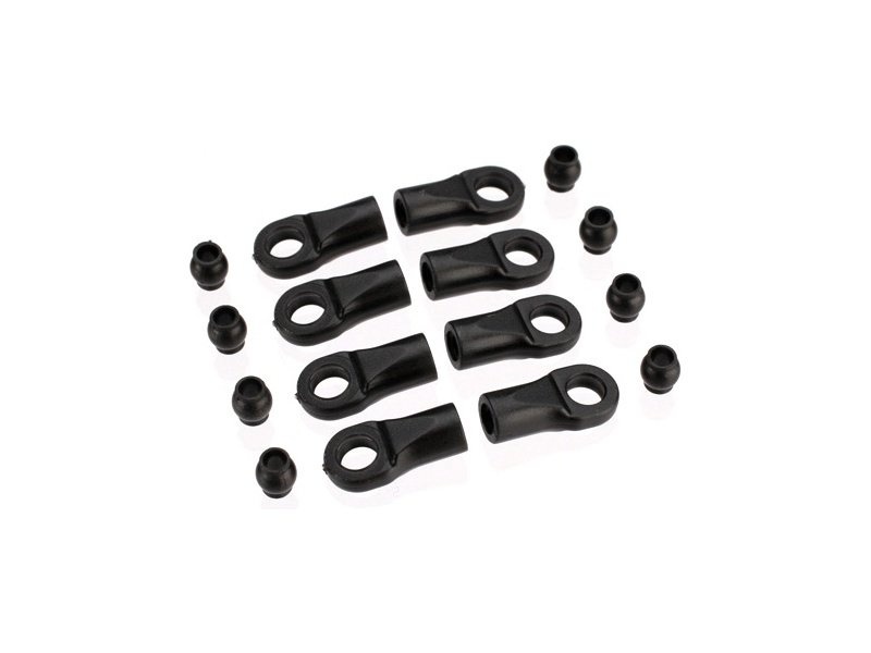 Koncovky kulových čepů pro RC auta Traxxas 1:16. Určeno pro táhla se závity M3, otvor pro kulový čep o průměru 4.5 mm. V sadě i kulové čepy s otvorem 2.5 mm.