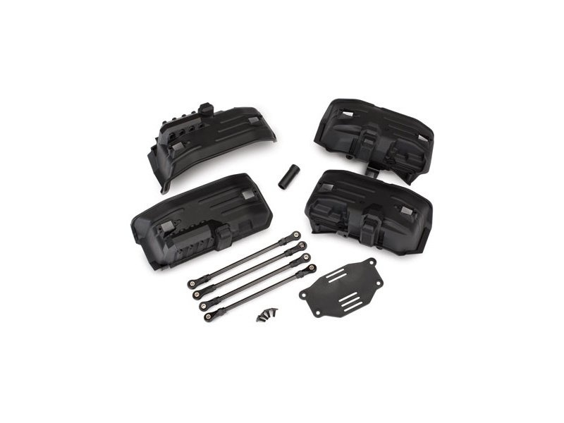 Konverzní sada pro podvozek Traxxas TRX-4 umožňující zmenšení rozvoru kol. Obsahuje zadní horní a dolní závěsné tyče, blatníky, vnější díl kardanové hřídele, upravený držák akumulátoru a spojovací materiál.