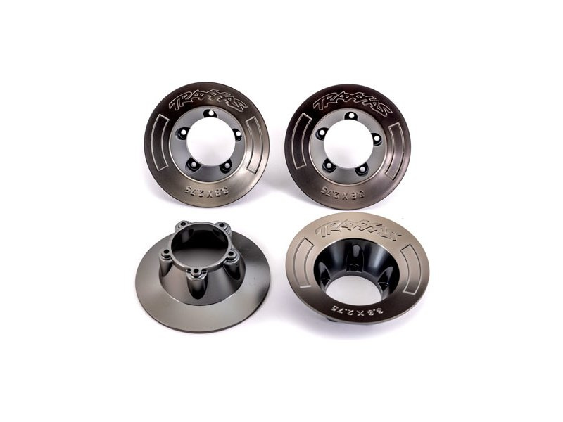 Designová poklice disku pro kolo Traxxas 3.8" Sledgehammer (TRA9572): polomatně černě chromovaná (4ks).
