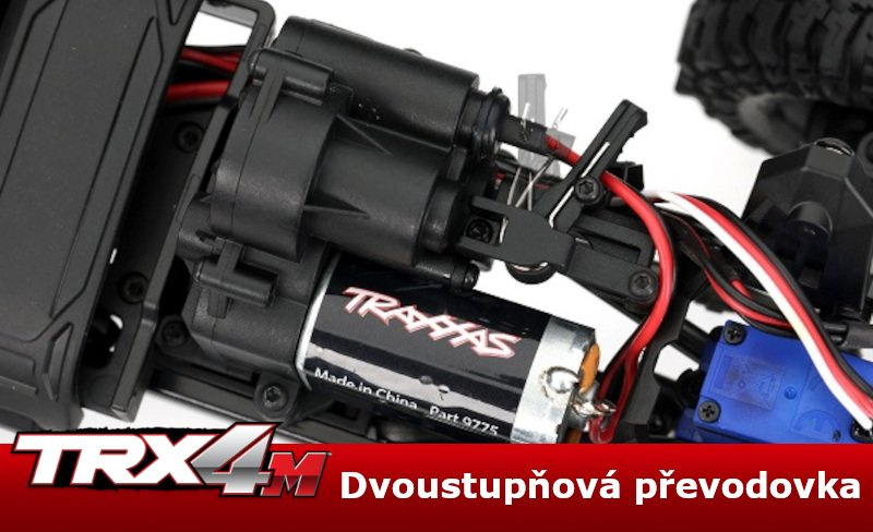 Tuningová dvoustupňová převodovka pro RC modely aut Traxxas TRX-4M/T 1:18, zvyšuje schopnosti v terénu a variabilitu přidáním nižšího převodového stupně pro pomalý přejezd přes překážky. Manuálně pákou na převodovce můžete přepínat mezi vyšším převodovým stupněm pro standardní rychlost modelu a nižším převodovým stupněm pro pomalou rychlost vhodnou pro technickou jízdu přes překážky.