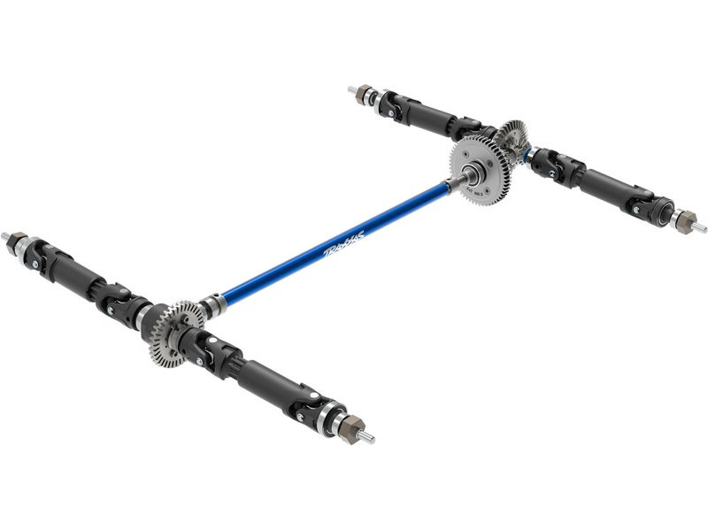 Extrémní výkon, vyžaduje maximálně odolné komponenty. Proto pohonné ústrojí tvoří ocelové čelní kolo, středový diferenciál pro distribuci výkonu mezi přední a zadní nápravu. Dále je točivý moment přenášen středovou hřídelí z extrudovaného hliníku k přednímu a zadnímu diferenciálu a následně ke kolům přes robustní teleskopické poloosy. Všechny rotační části jsou uloženy v kvalitních zapouzdřených ložiscích. Diferenciály jsou osazeny kovovými převody pro nejvyšší odolnost.
