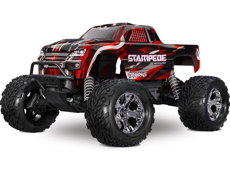 RC model auta Stampede 1:10 typu Monster Truck je poháněn střídavým motorem a regulátorem BL-2S pro napájení 2S LiPo akumulátory. Střídavý pohonný systém přináší brutálnější akceleraci, dlouhou životnost a rychlost modelu až 64km/h. Navíc je model továrně vybaven sadou Extreme Heavy Duty pro vysokou odolnost a exkluzivním bez-sponkovým systémem upínání karoserie.