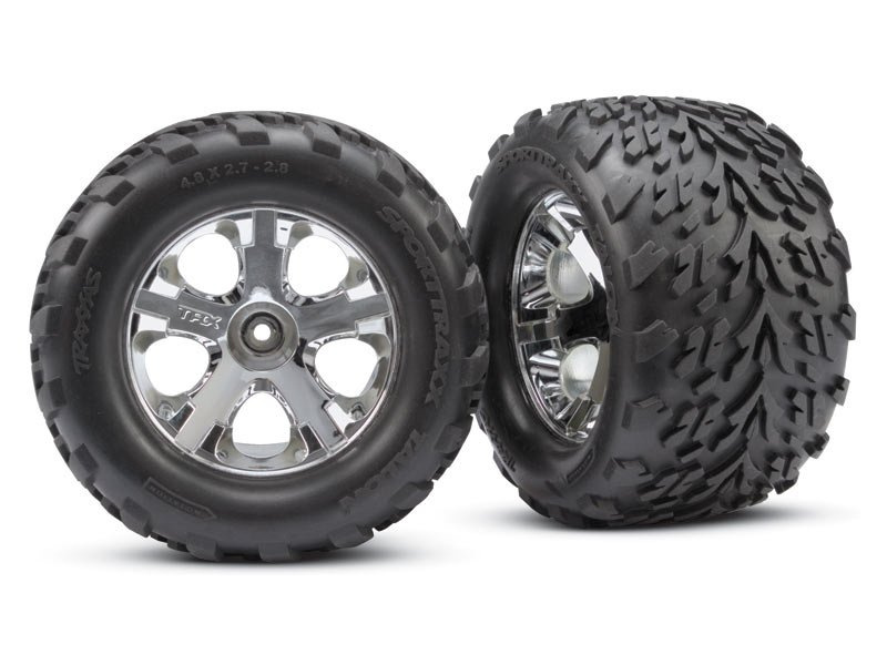 Stampede jezdí na velkých chromovaných kolech All-Star 2.8". Jedinečná pryžová směs pneumatik Talon má vysokou přilnavost na široké škále povrchů včetně hlíny, trávy, betonu i kamenů.