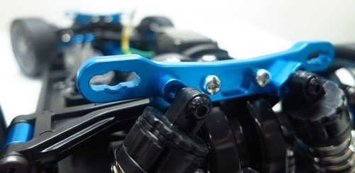 Hliníkový držák tlumičů pro podvozek Tamiya TT-02, lze použít jako přední nebo zadní, 1ks. Více informací