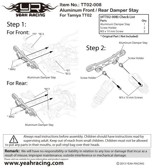 YeahRacing - kvalitní tuningové díly, doplňky a příslušenství pro RC auta. Firma je na trhu od roku 2002. K výrobě tuningových dílů využívá zejména hliníkovou slitinu, karbon, sklolaminát a plast. Většina hliníkových dílů je řezána na vysoce výkonných CNC strojích a všechny produkty procházejí kontrolou kvality. Firma má vlastní továrnu v Číně, která je vybavena CNC stroji pro výrobu přesných hliníkových dílů. YeahRacing produkuje také elektronické regulátory, elektromotory, gyroskopy, chladicí ventilátory, tlumiče, nářadí, sady osvětlení, kola, ložiska a další.
