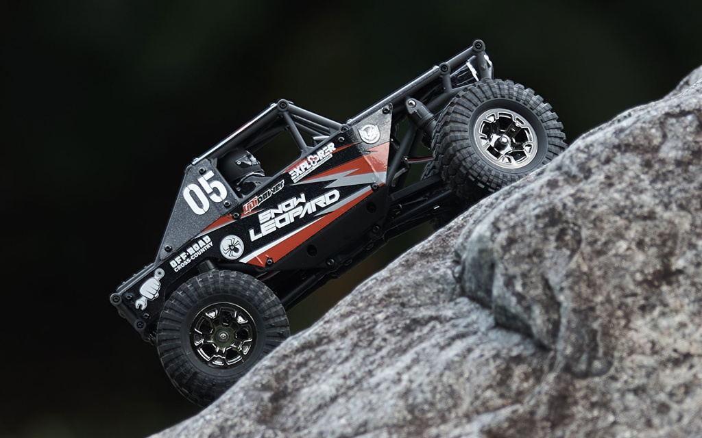 Snow Leopard je vybaven pro jízdu v náročném terénu díky přilnavým pneumatikám z měkké gumy, precizně navržené geometrii víceprvkového zavěšení a olejovým tlumičům. Vysoká světlá výška uprostřed, velké nájezdové úhly a nízké těžiště dávají modelu působivé schopnosti všude, kam se vydá.